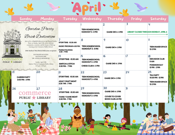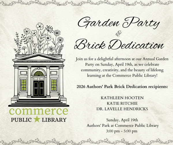The Commerce Public Library is operated by The Friends of the Commerce Public Library, a charitable, non-profit corporation. All unrestricted donations will be used for purposes consistent with its 501c-3 tax-exempt status as determined by the Friends' board.
